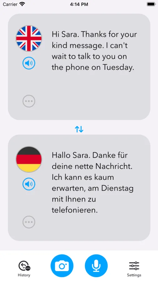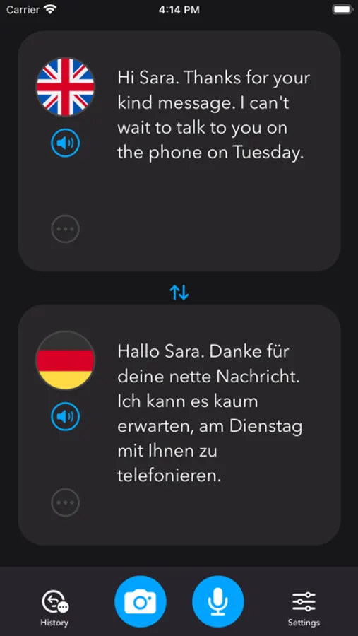 Built in voice to text translation, with optional auto read back - so you can perfect your pronunciation.
