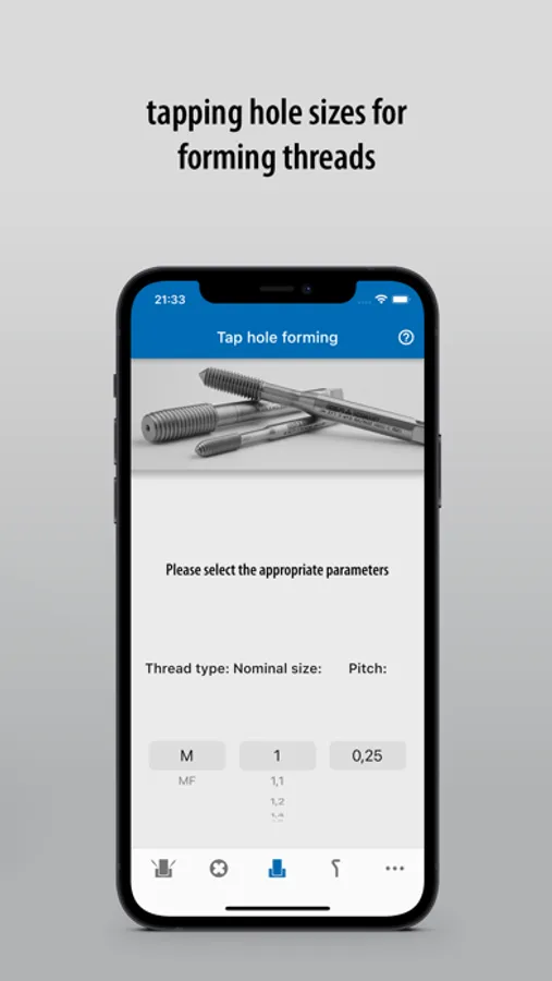 Simply select the desired thread type, nominal size, and pitch and you will get the matching diameter for your project. This saves precious time you would have spent tediously searching for internal and external thread dimensions in tables.