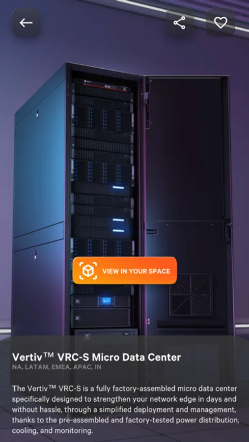 Vertiv™ XR allows you to interact with state-of-the-art digital infrastructure solutions as you would do if with the actual product in front of you, from the comfort of your home or office, or in the very space you need to deploy it.