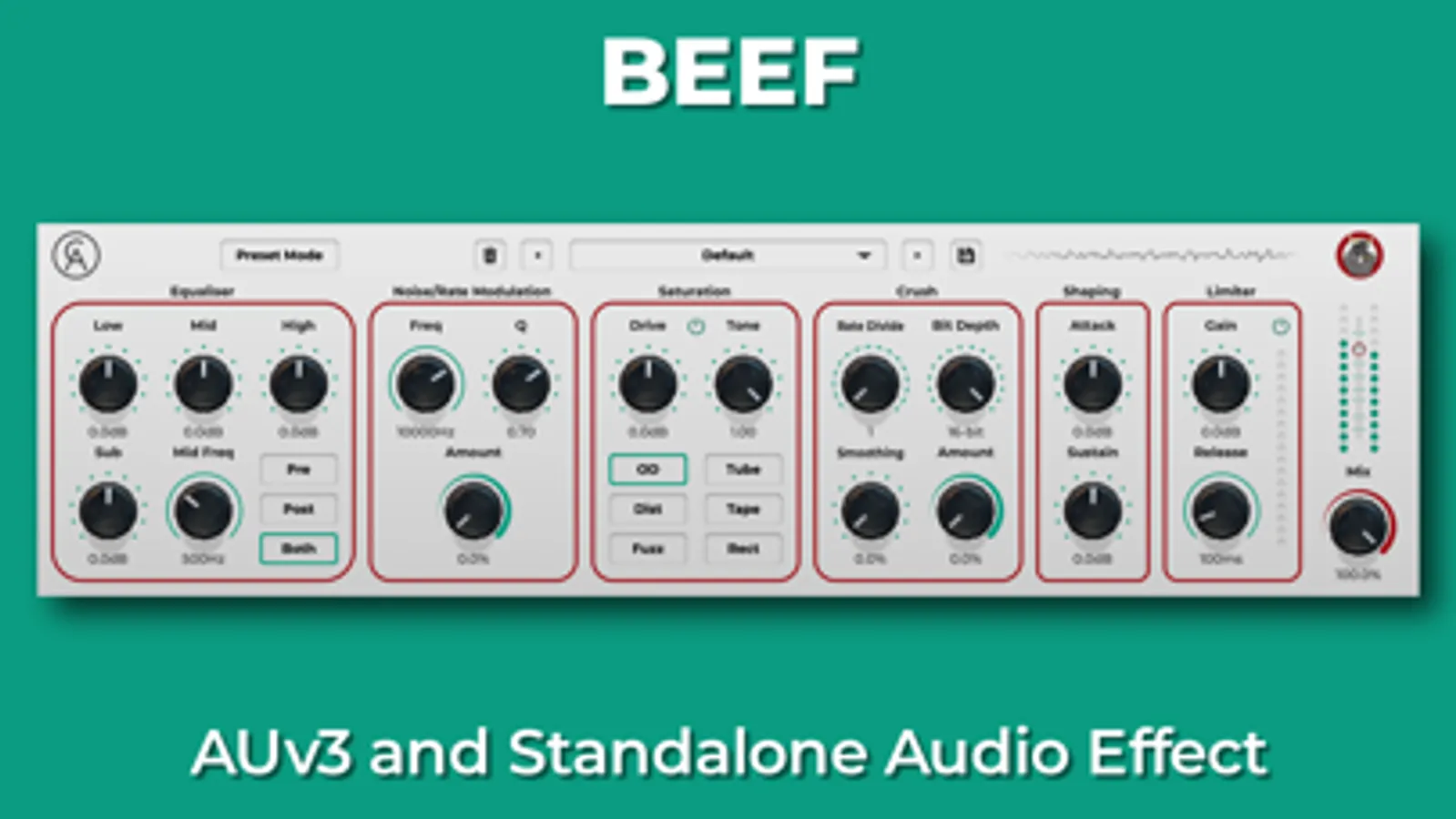 Beef is designed as an AUv3 plugin, meaning it works within iOS and iPadOS hosts such as GarageBand, Cubasis 3, AUM and Beatmaker 3.
