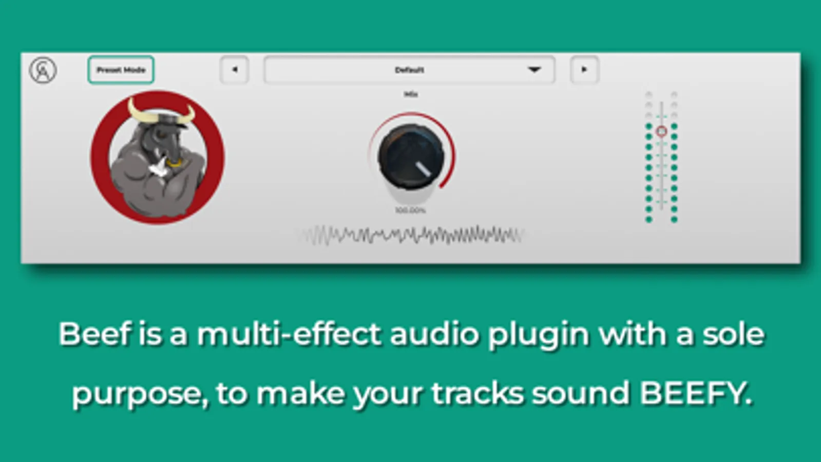 Beef is a multi-effect audio plugin with a sole purpose, to make your tracks sound BEEFY. It brings all the effects you need to create powerful sounds into one efficient and easy to use window.