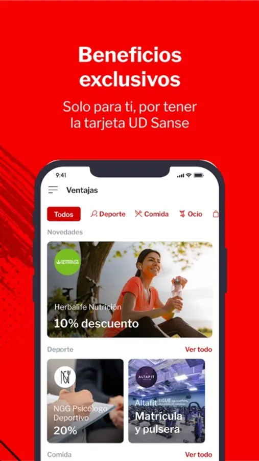 Saca el máximo rendimiento a tus medios de pago UD Sanse. Contrata de manera fácil y segura, tu tarjeta desde la app y comienza a operar con ella. Nunca tener una tarjeta había sido tan fácil.