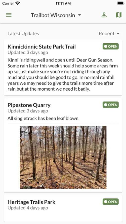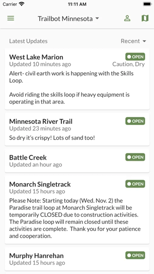 Official trail conditions with push notifications for 100+ MTB trail systems across Minnesota and Wisconsin. Coming soon to additional areas. Interested in adding your trail or have other app feedback? Email us hi@trailbot.com