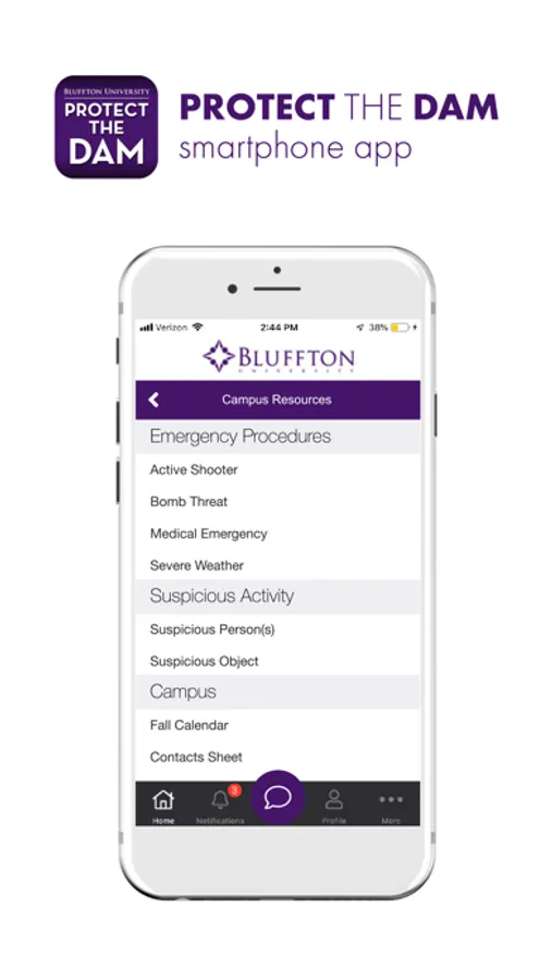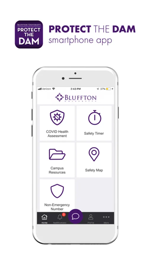 Protect the Dam by adding an additional layer of protection to your campus experience by taking Covid Assessments, viewing updates to the campus Safety Map, Setting Safety Timers and reviewing Campus materials via the Resources folder.