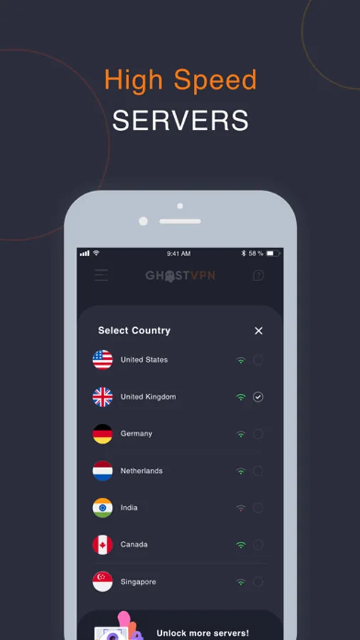 Connect to the internet at jet speed with Ghost VPN. We guarantee high speed in all the locations we provide. Keep surfing without slowing down!