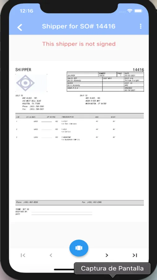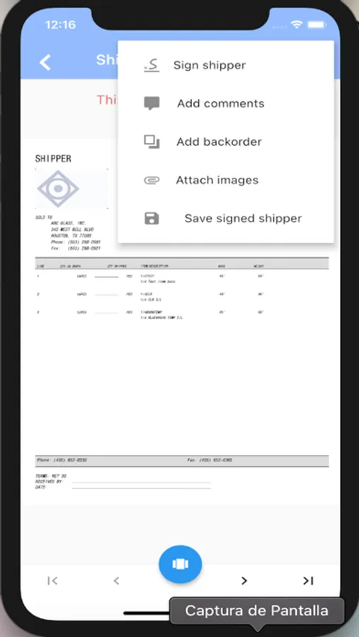 You can see the shipper PDF generated from Glasstrax on you mobile devices and let your customer to sign it. Also, you can take pictures and include them as attachments on your shipper. Also, you can include comments to the shipper and backorder items.
