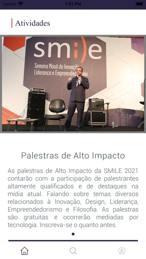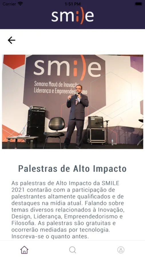 A SMILE é um evento integrador entre as áreas de Administração, Design e Engenharia do Instituto Mauá de Tecnologia, que tem como objetivo apresentar novas tendências, tecnologias e conteúdos com a finalidade de incentivar o intercâmbio e a atualização de conhecimentos entre profissionais e estudantes.