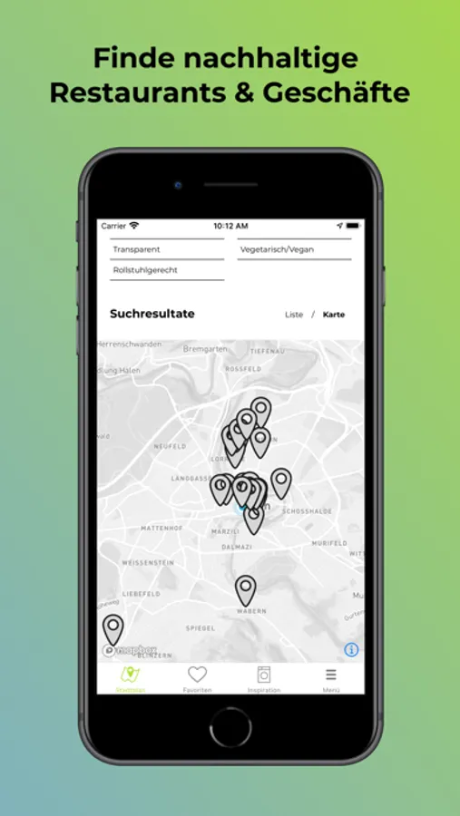 - Filterfunktion mit 8 Nachhaltigkeitskriterien und rollstuhlgerechten Geschäften