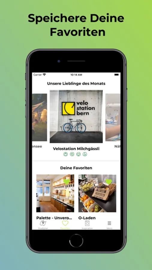 - Speichere deine Lieblingsgeschäfte in deinen Favoriten.