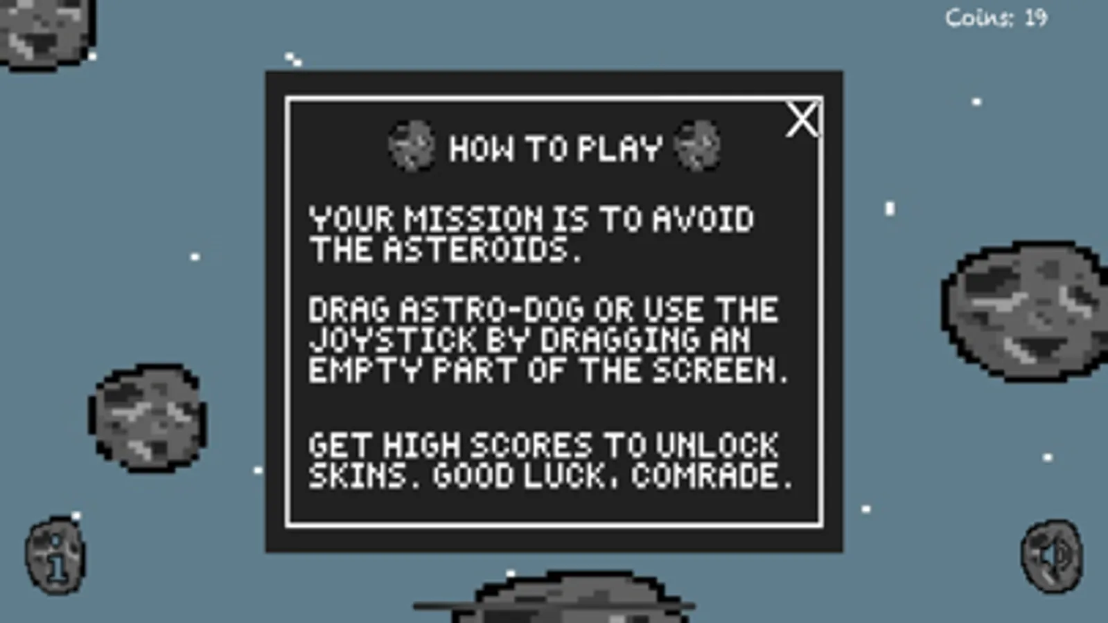 Astro-Dog has seemed to have found itself in a RUFF situation. Help Astro-Dog navigate through the incoming asteroids which seem to get faster every second.