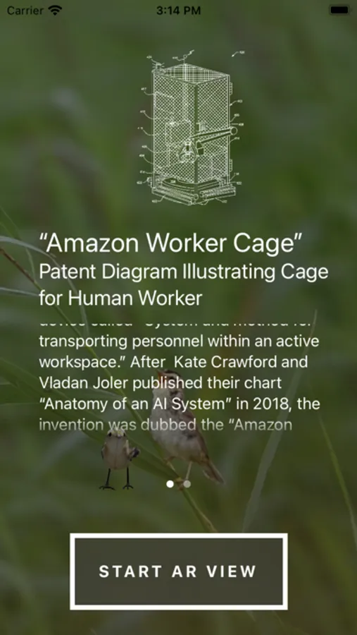Simon Denny, Amazon worker cage patent drawing as virtual Aquatic Warbler