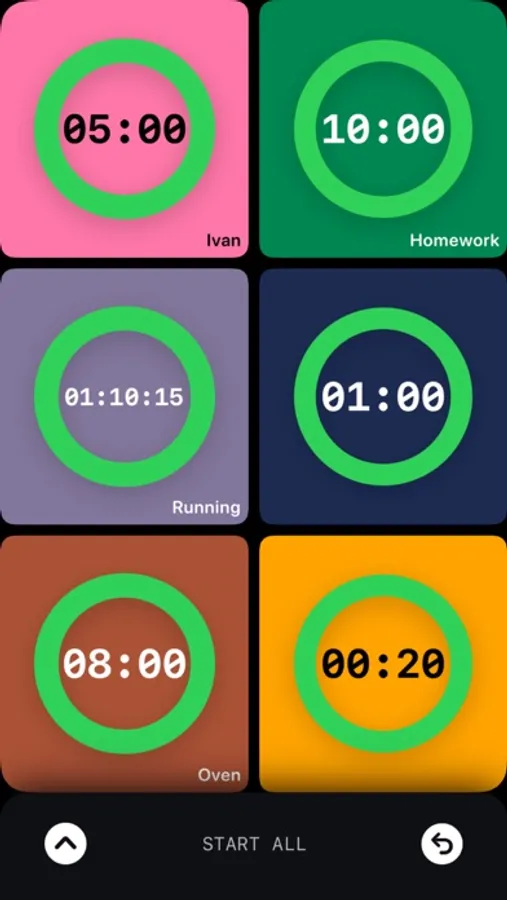 Timeric allows you to set up to 6 timers, all in one screen at a distance of a single tap and it’s customizable. Name your timers and change their background color.