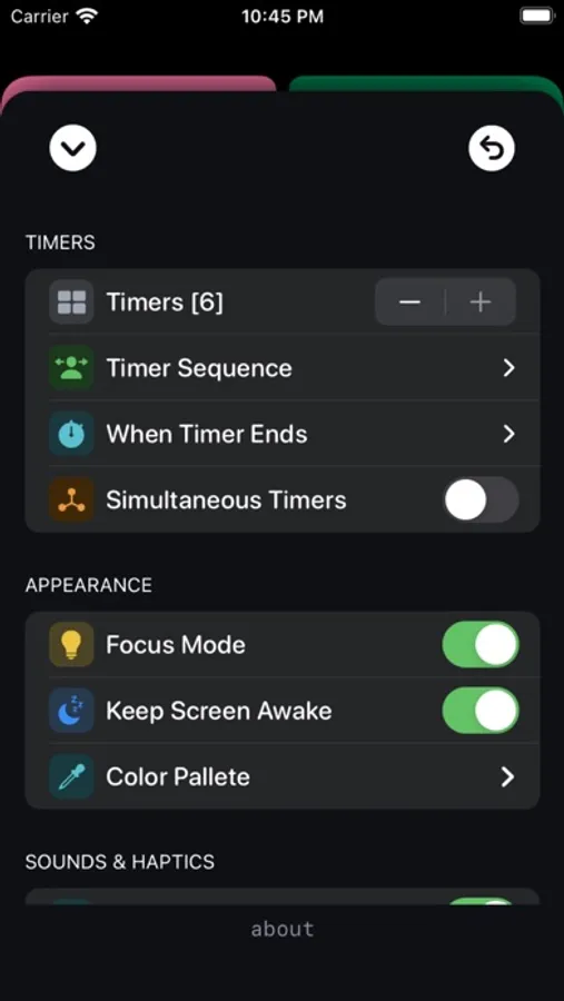 Focus Mode allows you to run sequencial timers with the non-running timers dimmed. Focus on the timer that is running without any distractions.