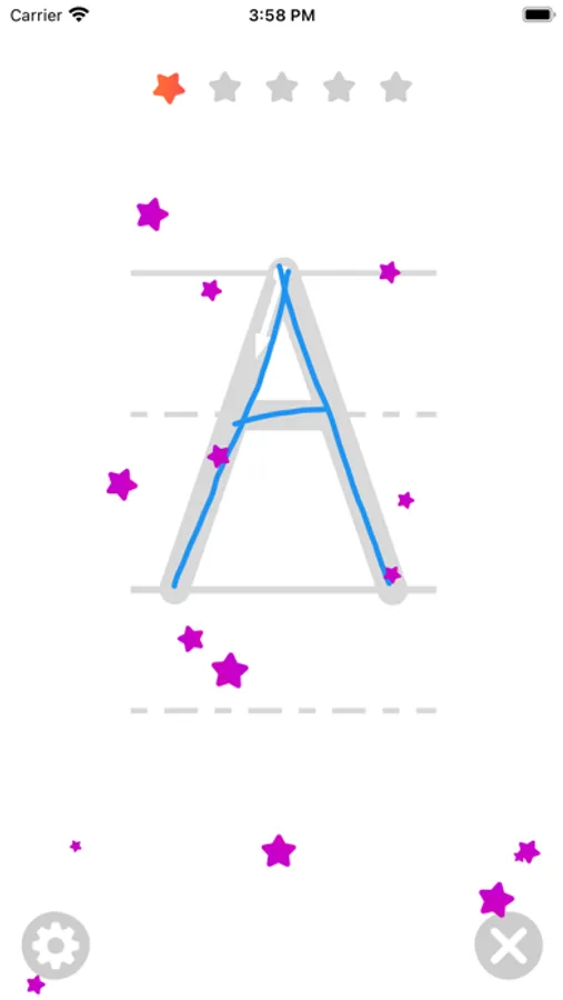 Motor skills take a little training, and learning to make accurate alphabet shapes with a pen or pencil takes time. Your Apple stylus leads the way here, developing skills for use with any pen. Simply set the app running, and leave them to practice.