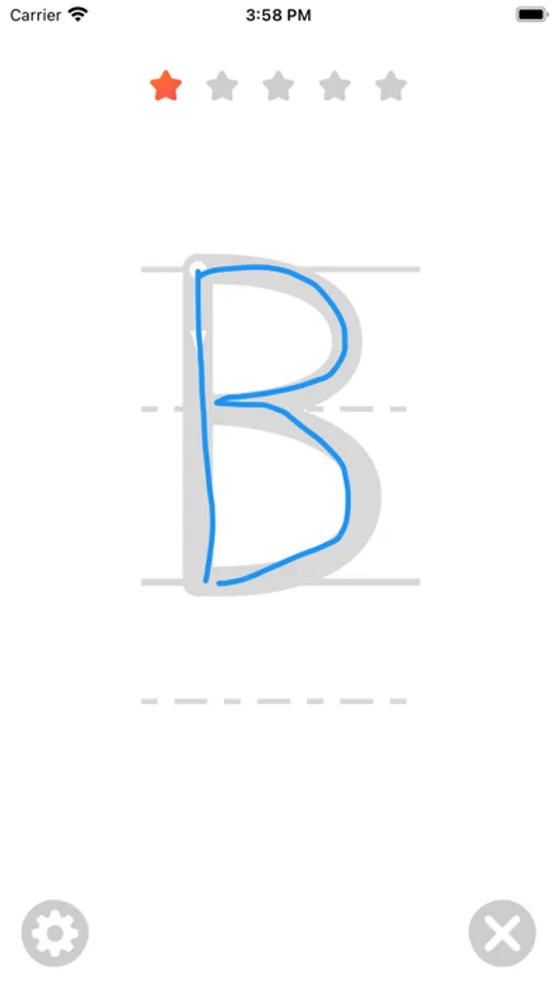 2) Now the letters appear onscreen, and they’ll see each one traced out clearly before they try for themselves. They’ll also hear the phonetic sounds to help them.