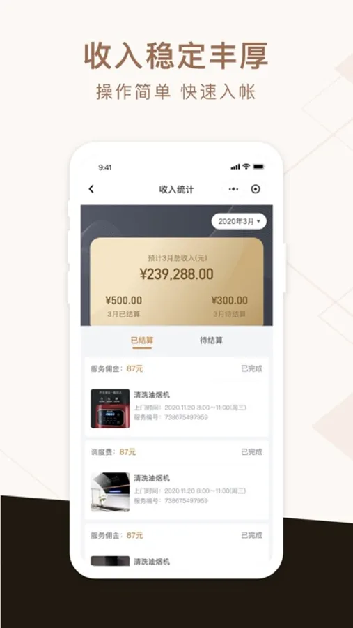 【收入可靠】每完成一单自动结算薪资,随时查看收入明细