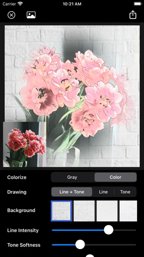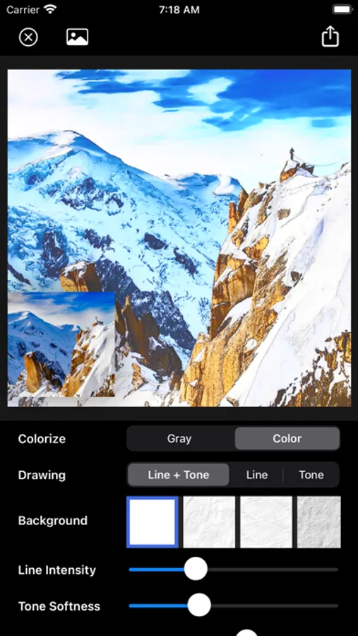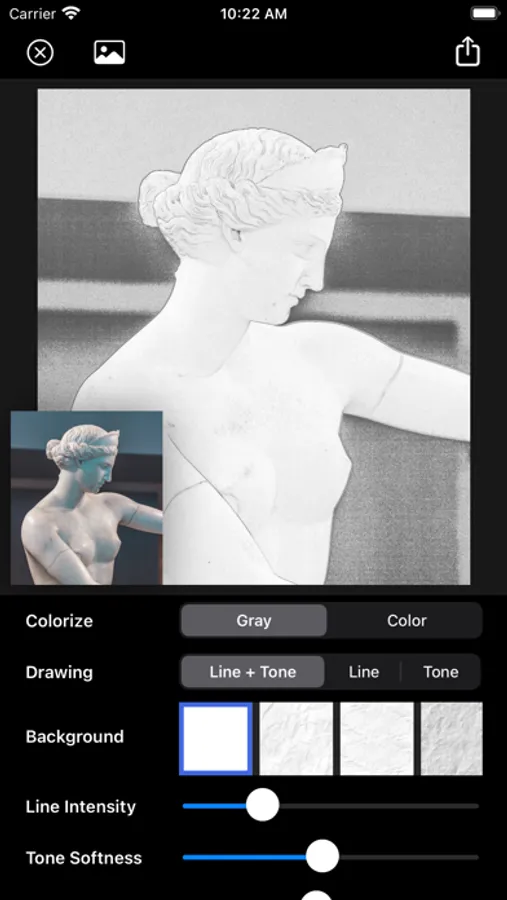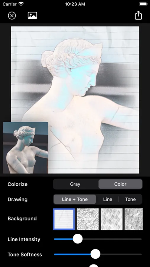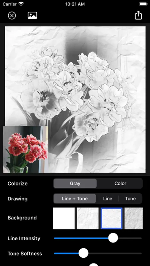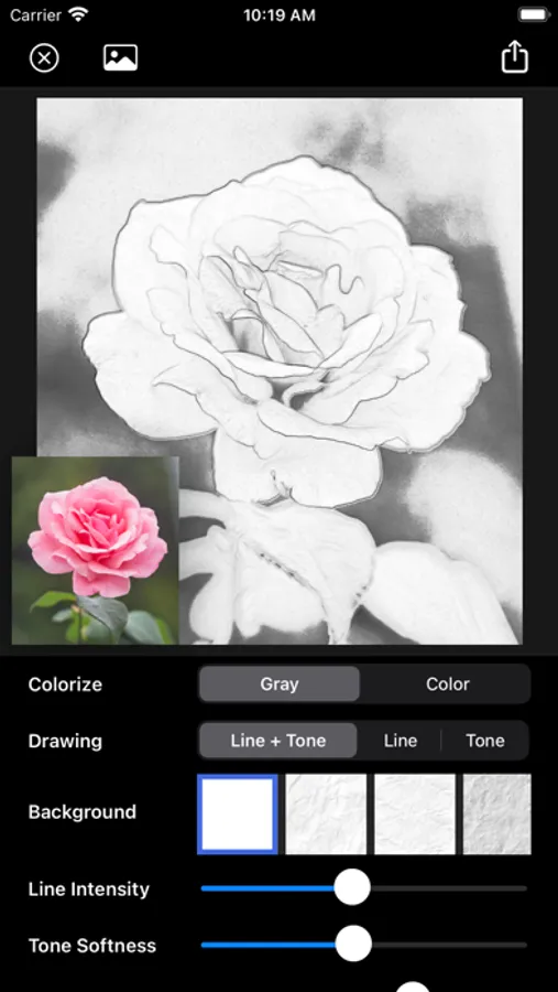 It supports not only gray pencil drawing effect, but also color pencil drawing. It also provides natural paper background and many adjustable options.