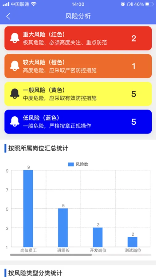 此App完全满足国家双重预防体系建设总体方案要求 ,用户可通过手机App随时随地检查风险点与上报隐患,需实现风险、隐患信息的多维度动态统计分析。结合企业特点,建立精准、动态、高效、严格的风险管控体系,全面排查,辨识、评估安全风险,落实风险管控责任,采取有效措施控制重大安全风险,对单位风险实施标准化管理。