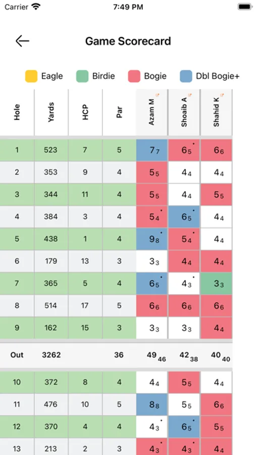 Unlimited number of twosomes, threesomes and foursomes can join a game and all matches and contests are tracked across all groups in real-time as different groups enter their scores into the app.