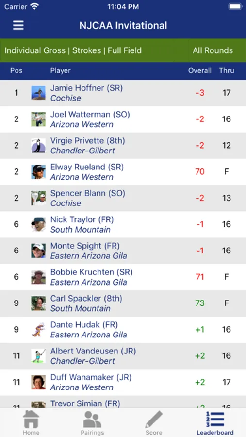The College Golf Live App combines mobile and desktop application technology to allow golfers to view live leaderboards during events and tournaments. On game day, just enter your scores into our easy-to-use scoring interface to let spectators and competitors keep track of your round in real time.
