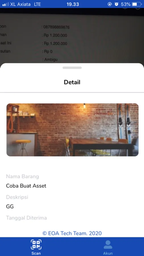 Aplikasi yang membantu Admin untuk mengetahui status aset EOA saat ini. Kita hanya perlu scan QR pada aset, detail aset yang ingin diketahui akan langsung muncul. Fitur: