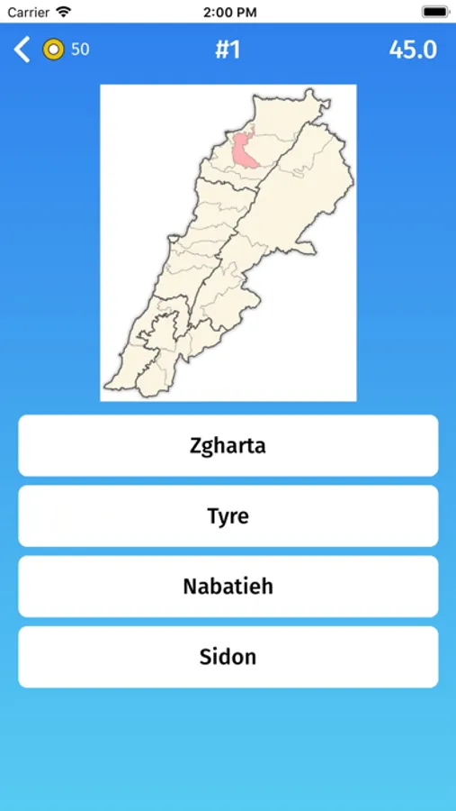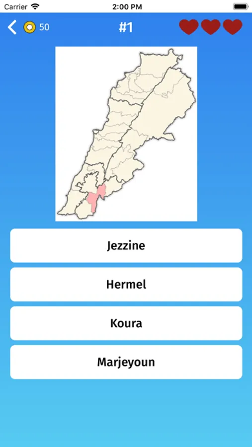 - Multiple choice: guess the provinces of Lebanon, by selecting one of the variants.