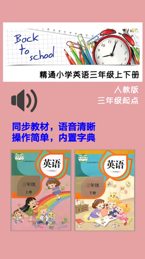 此App包括人教精通版《小学英语三年级上下册》全部课程内容。
