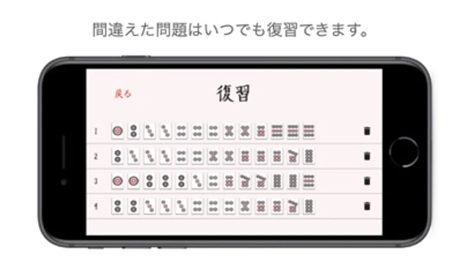 清一色を練習するためのクイズアプリです。異なる1000問以上の問題を収録しており、繰り返し解き続けることで麻雀の技術を高めます。