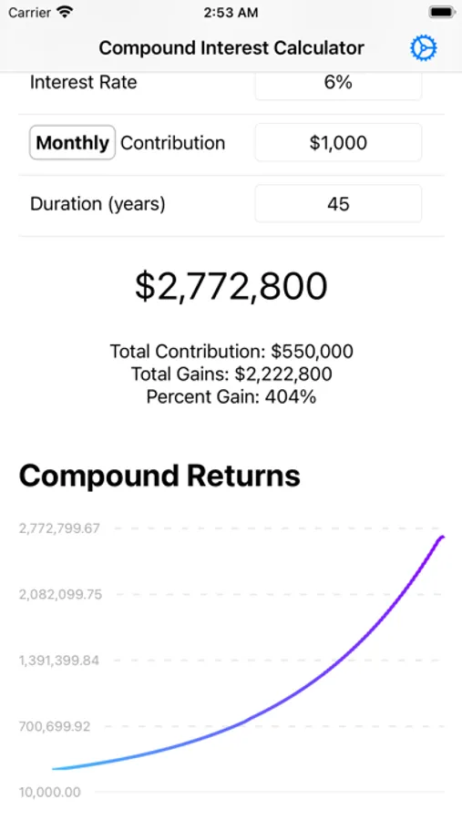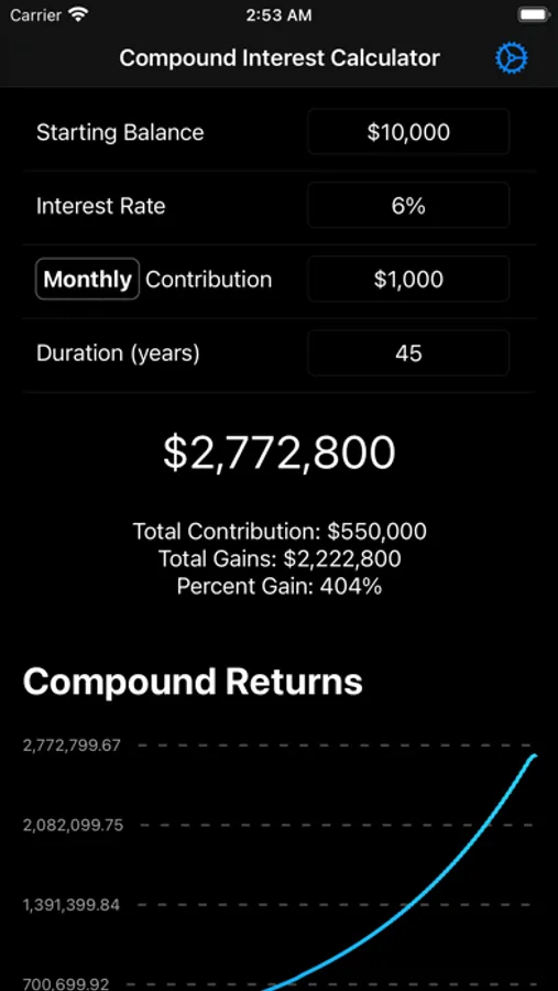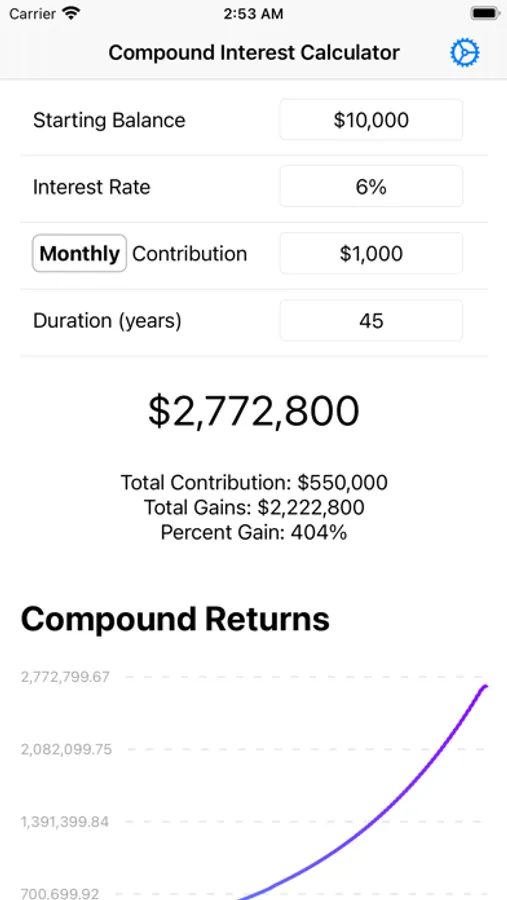 Use to get a good estimate for how much money you'll have for retirement or just to play around with and realize just how amazing compounding is.