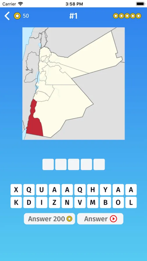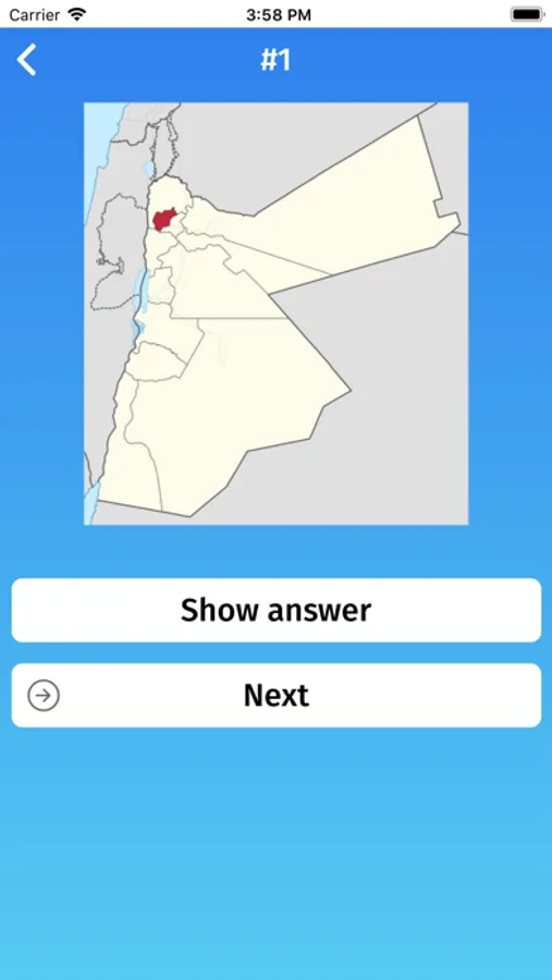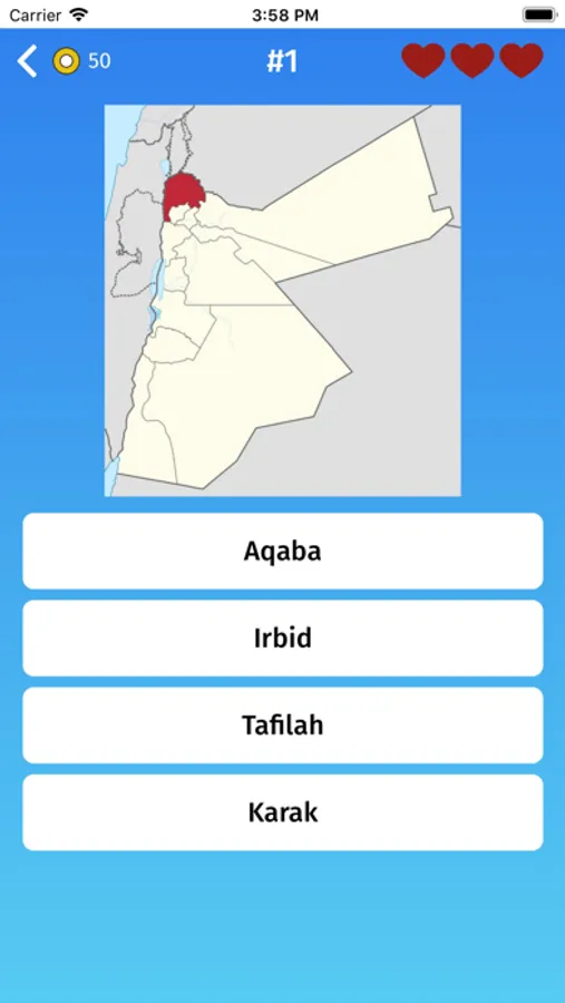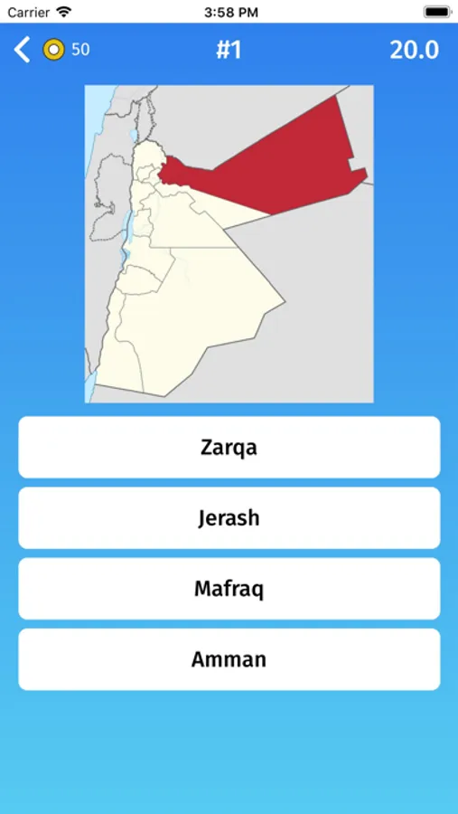 - Multiple choice: guess the provinces of Jordan, by selecting one of the variants.