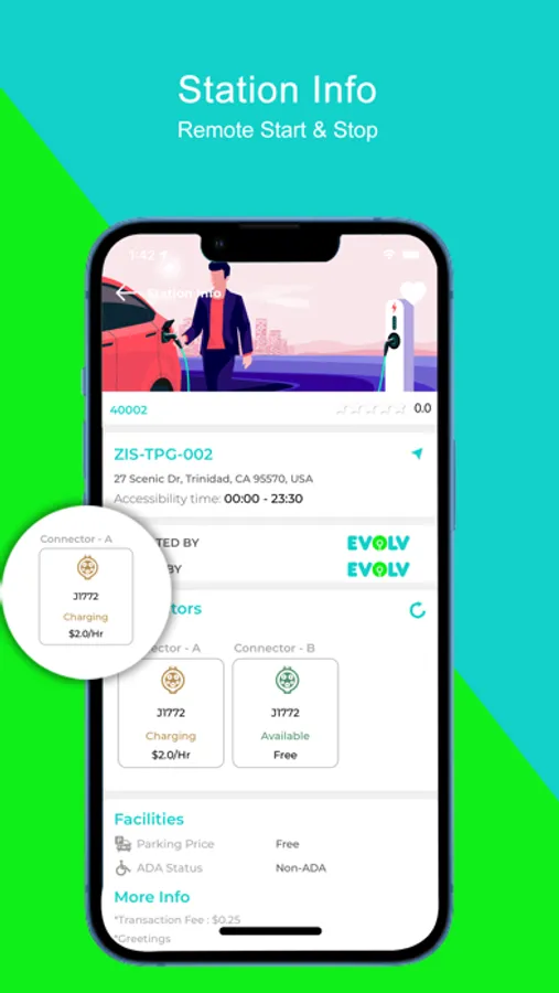 Evolv EV Charging Mobile Application allows users to locate and navigate to the nearest charging stations and complete a paperless charging session. Become a member, access, and edit your account (including your profile and billing information), request RFID cards, and receive charging status notifications. Contact our 24x7 Customer Support team to Report a station issue directly from the Mobile app with the ability to provide a description and pictures. We give you complete control and visibility to your charging activity!
