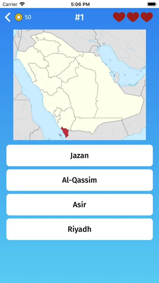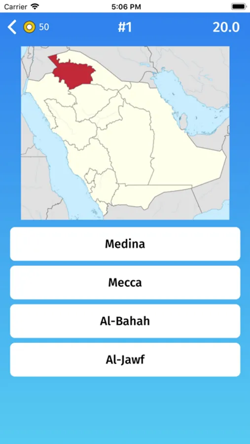 Saudi Arabia trivia map game provides the unique geography test experience.