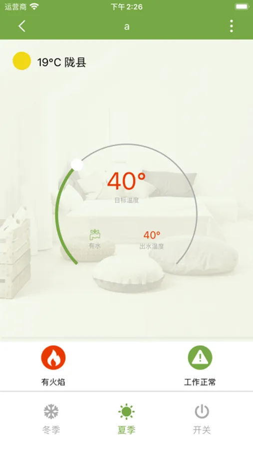 智慧采暖智能云软件需要与智慧采暖智能云温控器协同工作,建议阁下使用智慧采暖智能云温控器来代替家中传统温控器。拥有智慧采暖智能云,阁下可以在手机上随时随地调控室内采暖温度,并且可以为家中壁挂炉燃烧方案进行编程,以达到既舒适又节能的供暖体验。有了它,省心省气又省钱,愿智慧采暖智能云给您带来不一样的冬天。