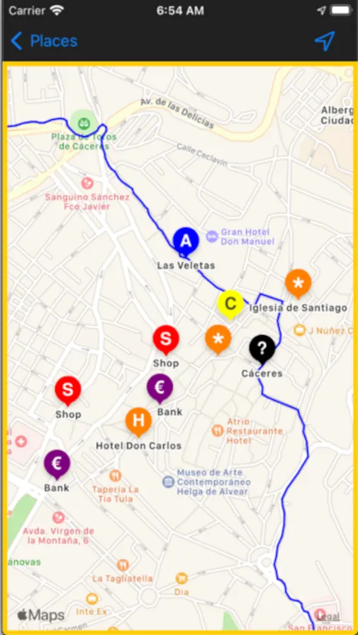 - "My location", shows you exactly where you are on the map