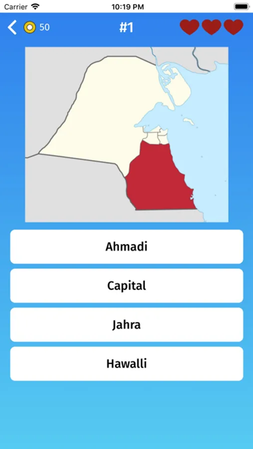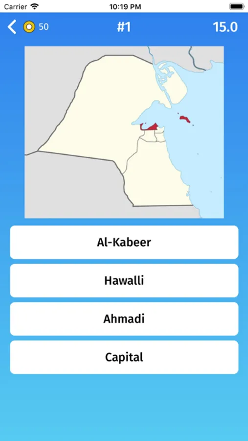 - Multiple choice: guess the provinces of Kuwait, by selecting one of the variants.