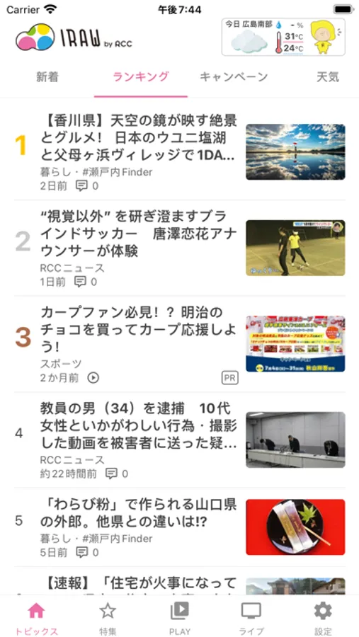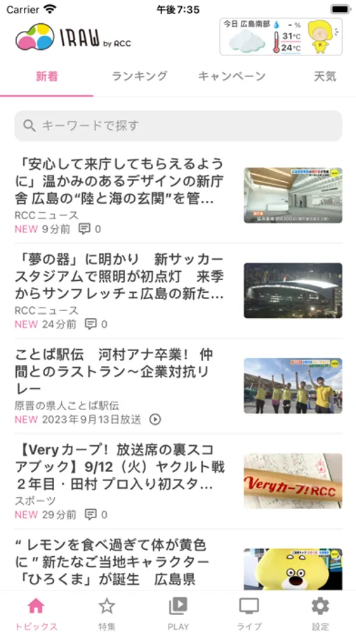 広島のニュース・天気・暮らし・グルメ情報が一挙に集約されて広島LIFEにピッタリ!