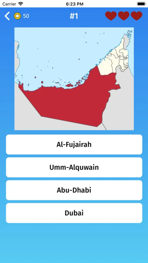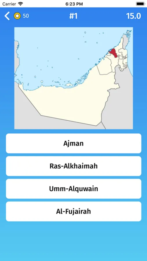 United Arab Emirates trivia map game provides the unique geography test experience.