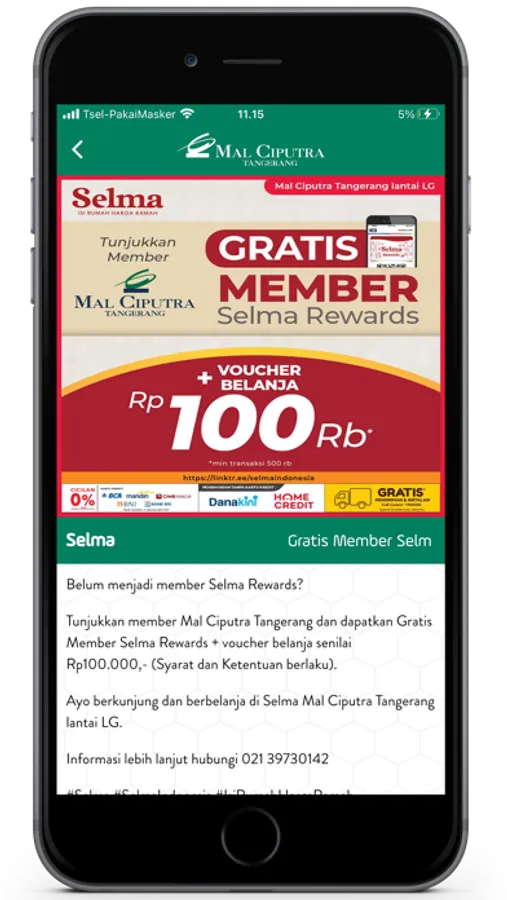 Get the best experience of being able to get information about Ciputra Mall Tangerang, shops, ongoing promos and events at Mal Ciputra Tangerang and also get points for every purchase to be redeemed into attractive rewards!