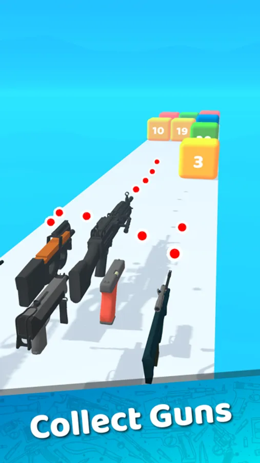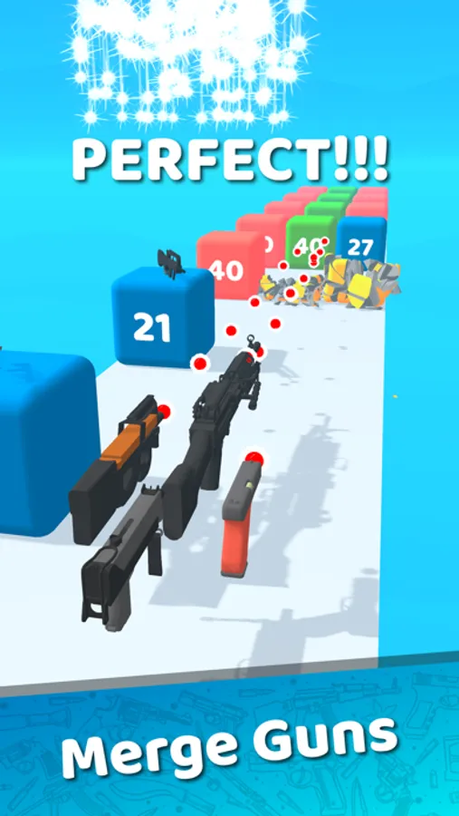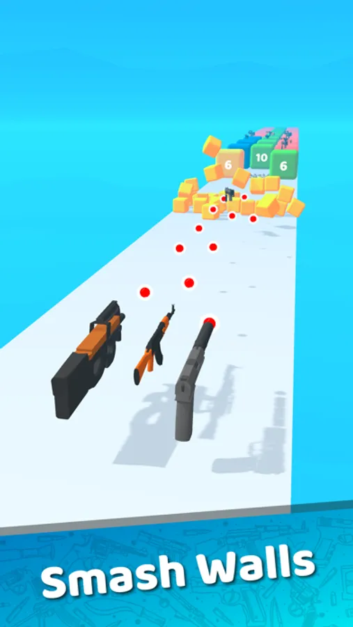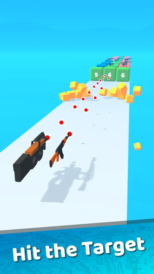 You have to explode the cubes you see in front of you. Pay attention to the numbers written on the cubes! You have to target the few cubes with small weapons. As your weapon evolves, you can shoot and explode more numbered cubes!