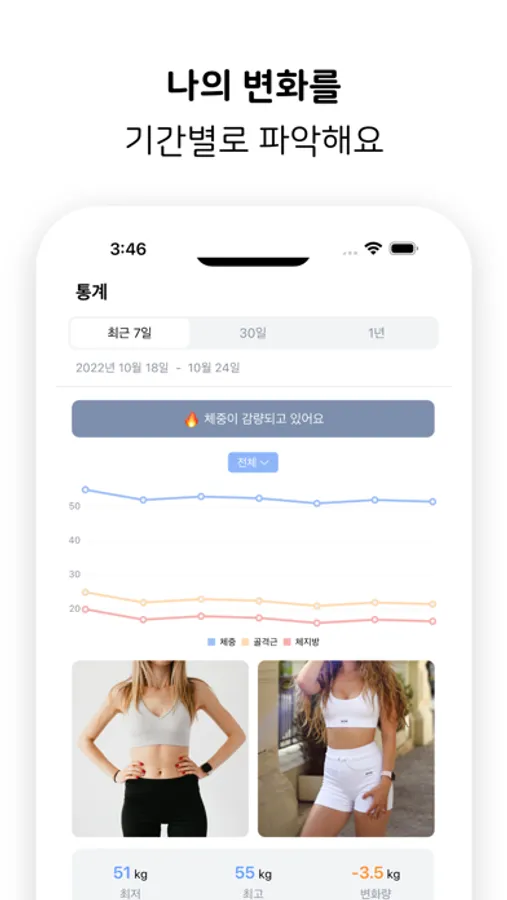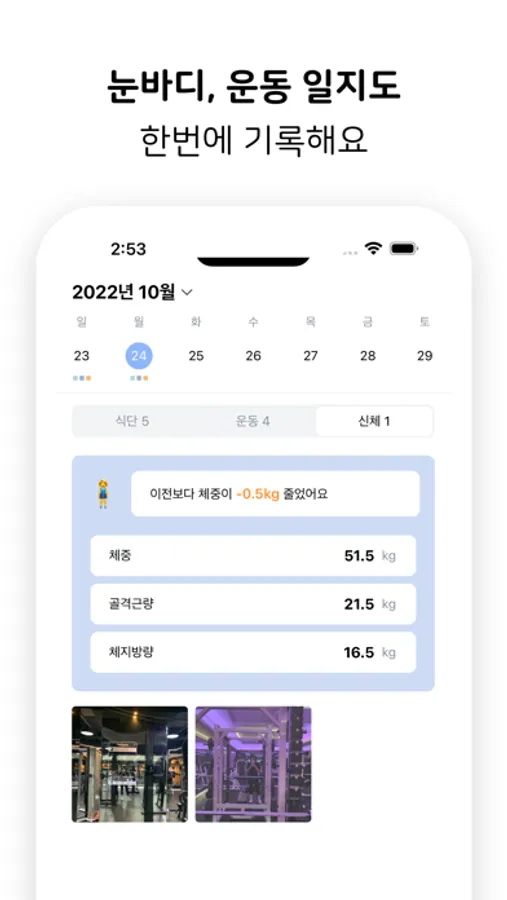 매일 규칙적으로 눈바디를 기록해보세요. 간단한 눈바디만으로도 건강한 몸매 관리에 큰 도움이 될 거에요.