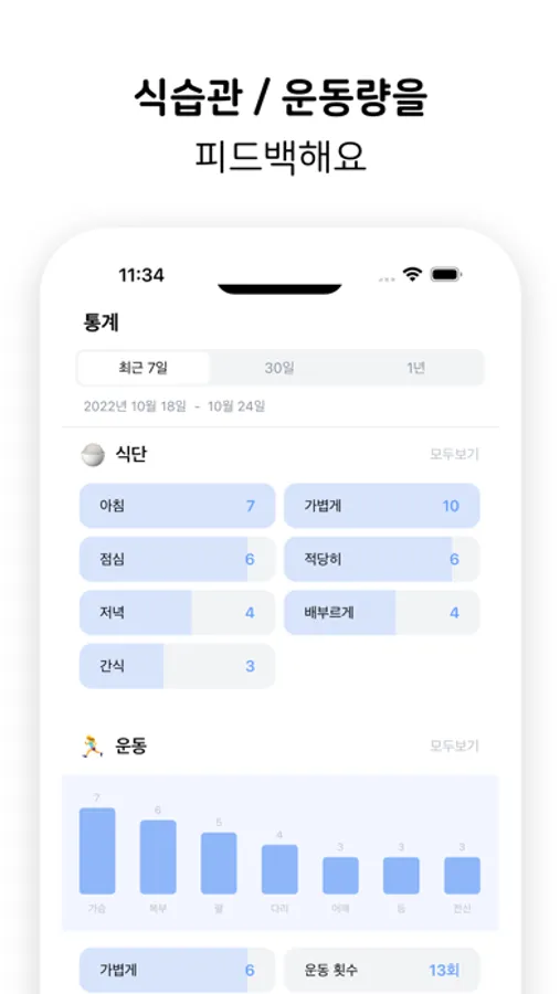 오늘은 운동을 얼마나 했는지, 흘렸던 노력들을 사진과 기록으로 남겨보세요. 평소 운동량이 적지는 않은지 파악하며 건강하게 몸 만들기를 진행할 수 있을 거에요.