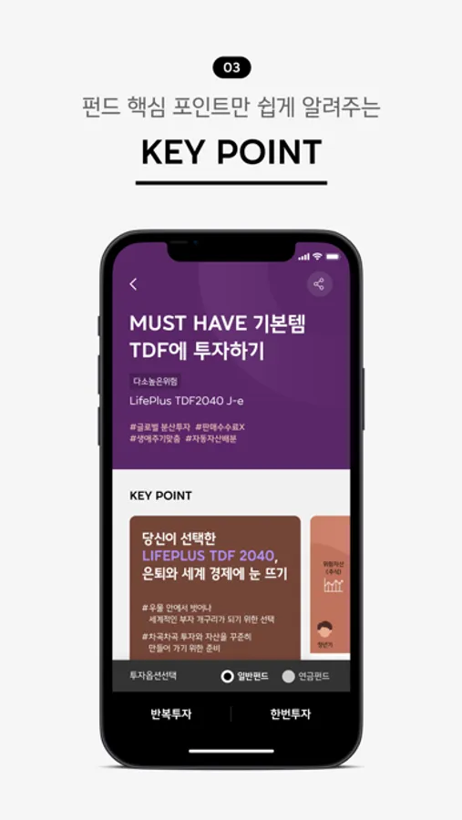 수많은 상품과 정보가 있지만 어디에 투자해야 할지 모르는 분들을 위해 상품을 직접 만들고 운용하는 전문가 그룹이 오랜 노하우와 전문성으로 수많은 펀드들 중 꼭 투자해야 하는 상품을 엄선하여 제공 합니다.