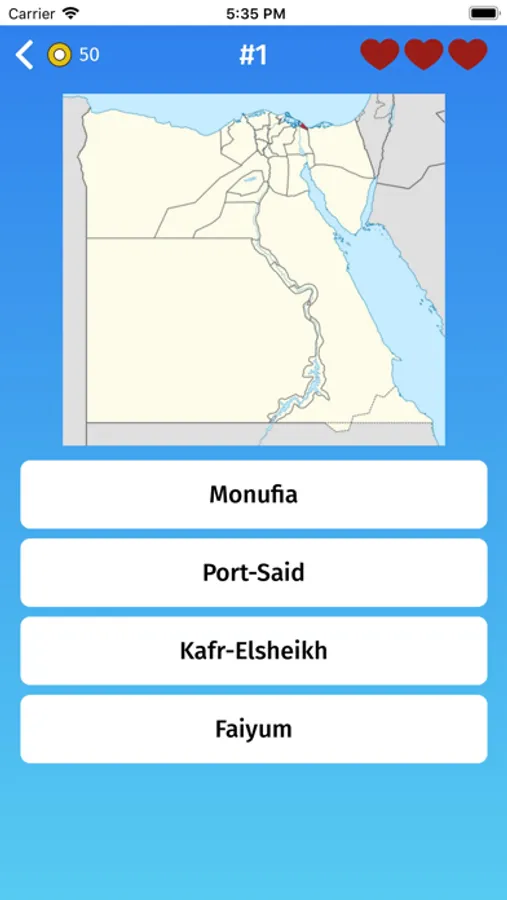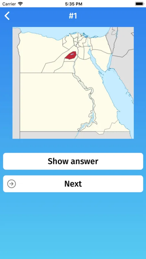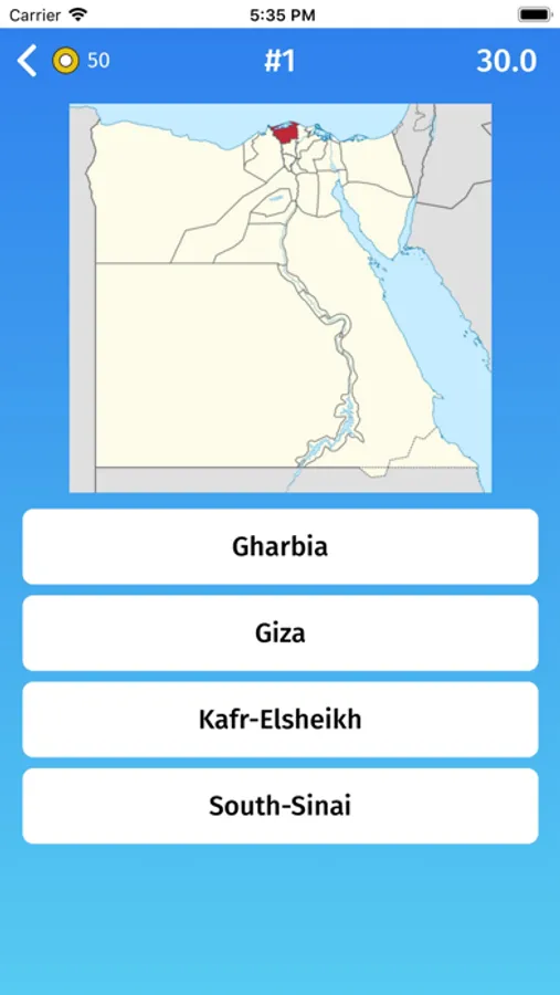 - Multiple choice: guess the provinces of Egypt, by selecting one of the variants.