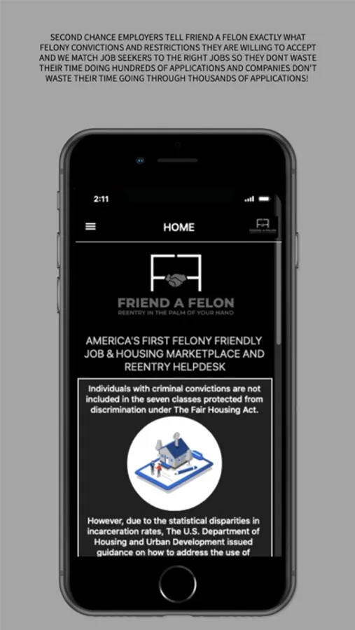 Are you or someone that you know a convicted felon? At Friend A Felon, we are committed to ending recidivism by championing successful reintegration. The Friend A Felon App, America’s first felony friendly job & housing marketplace and reentry helpdesk, is the first of its kind providing transparency and accessibility to resources and opportunities most don’t know is available to them!