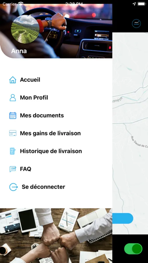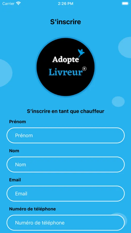 Application professionnelle pour Chauffeur partenaire Adopte Une Livraison.