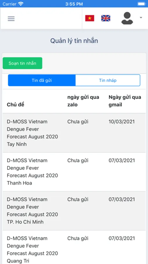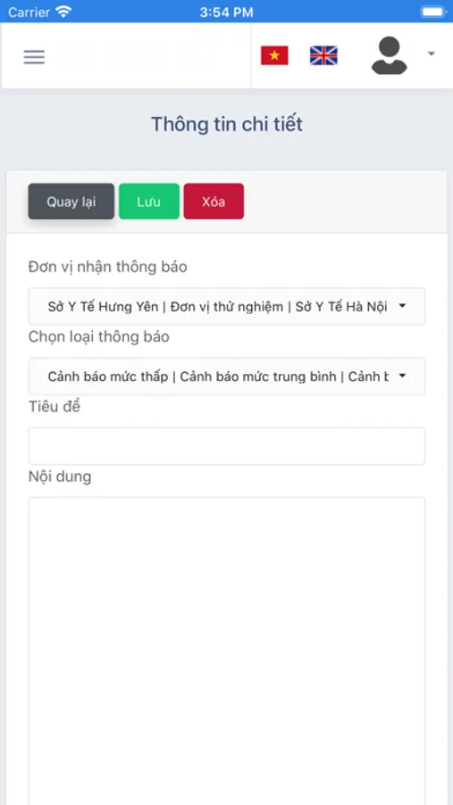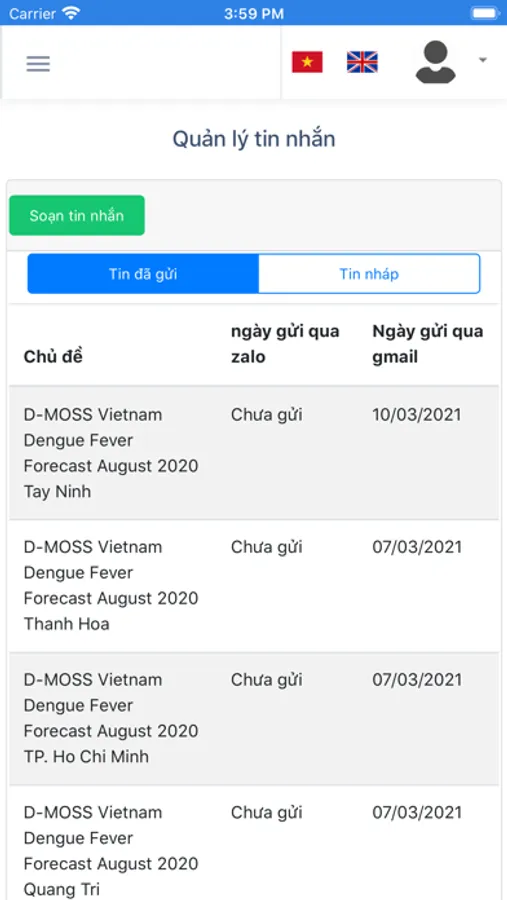 ứng dụng quản lý thông báo, cảnh báo nguy cơ diễn biến của các bệnh truyền nhiễm được thu thập thông tin từ vệ tinh, từ nguồn cơ quan y tế cung cấp.