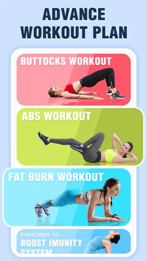 Daily Women Workout at Home Get back in shape with the Workout App for Women - Fitness Workout at Home. Women’s fitness includes a collection of weight loss workout, buttocks workout, fat burning and abs workout, etc... These effective workouts can help to burn calories, strengthen your muscles, and get abs for women. Determine and plan your fitness goals. Workout Daily for Fitness Success.