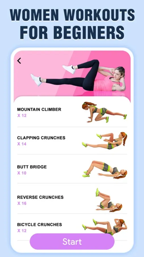 Workout app for Women provides an effective women workout to slim down and keep fitness at home. Fitness Workout combines the full body exercises that helps to strengthen your core, burn fat, and get a flat waistline with perfect beach body without any equipment, using only bodyweight at home.