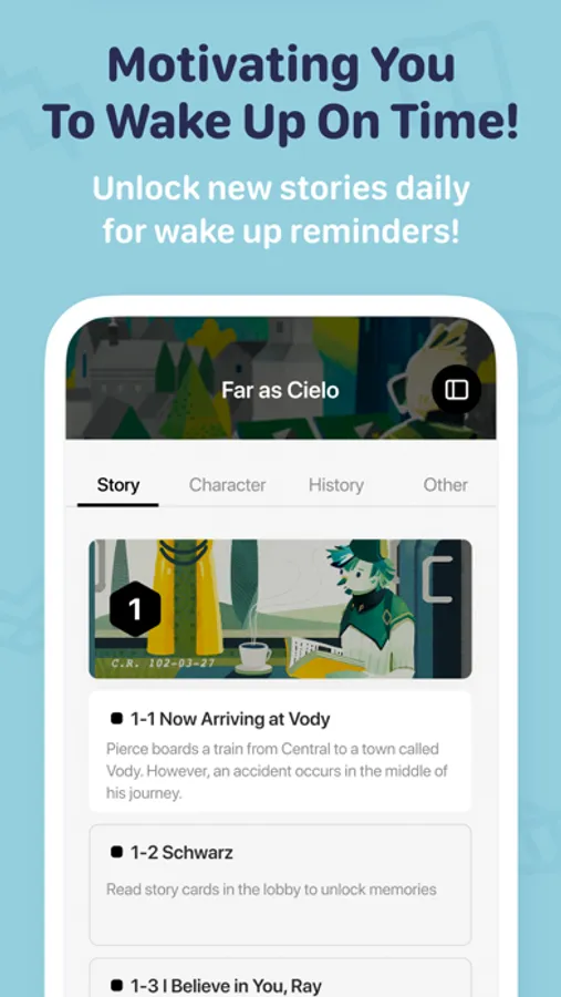 If you get up at the right time, a new chapter will be unlocked and you can start your day by reading. The 3 stories cover war themes, suspense and sci-fi to give you a truly exciting waking up experience.