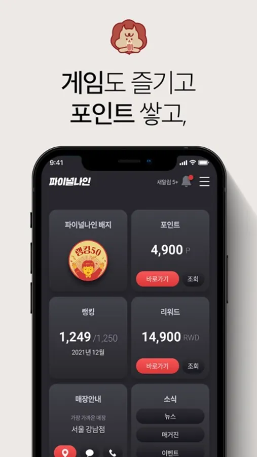 우리들의 아지트 '파이널나인' 의 모바일 멤버십 앱입니다.